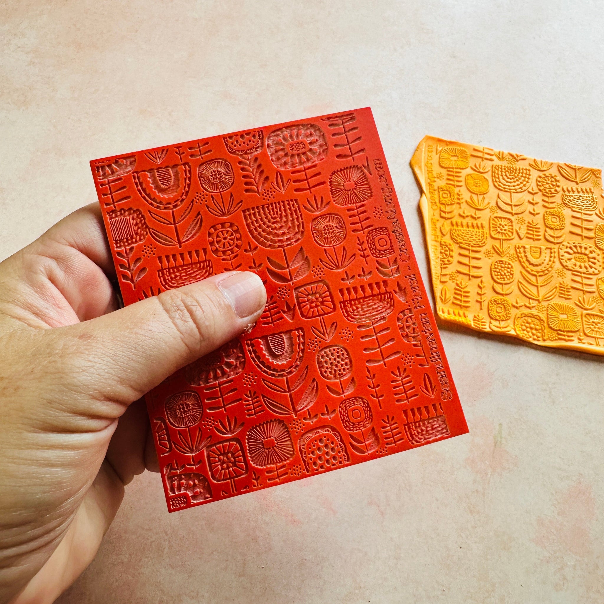 Scandi Flowers Rubber Stamp polymer clay texture sheet