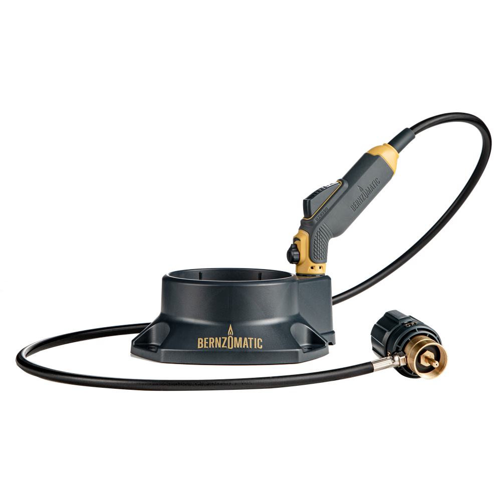 Key features include an instant on/off ignition, a continuous flame lock, and pressure regulation for use at any angle. It also comes with a flexible 41” fuel hose for easy maneuverability and a lightweight fuel stand to stabilize your 14 or 16 oz fuel cylinder during use. The stand features a built-in torch dock, allowing you to safely store the tool after turning off the flame.